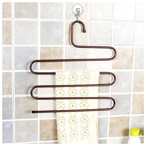 -. Binding : Kitchen -. Brand : SODIAL(R) -. Color : Bronze -. EAN : 4894621060156 -. Feature : Now you can securely store your slacks without taking up much space in your closet using this Slack Hanger. / The unique open end design allows you to hang and remove slacks quickly and efficiently. / This item is a part of Hanger Collection featuring a simple yet unique design that is substantial enough. / to keep your garments in place while protecting them from unwanted creases or snags. / Give you more convenience to hang your cloth and save space;Strong Hanger, not Easy to Be Deformed. -. Label : SODIAL(R) -. Manufacturer : SODIAL(R) -. Model : 092933A3 -. MPN : 092933A3 -. PackageQuantity : 1 -. PartNumber : 092933A3 -. ProductGroup : Home -. ProductTypeName : HOME -. Publisher : SODIAL(R) -. Studio : SODIAL(R) -. Title : SODIAL(R) Metal Magic Pants Hanger Space Saver Rack Jeans Scarf Tie Closet Tool(bronze) -. UPC : 191466083192