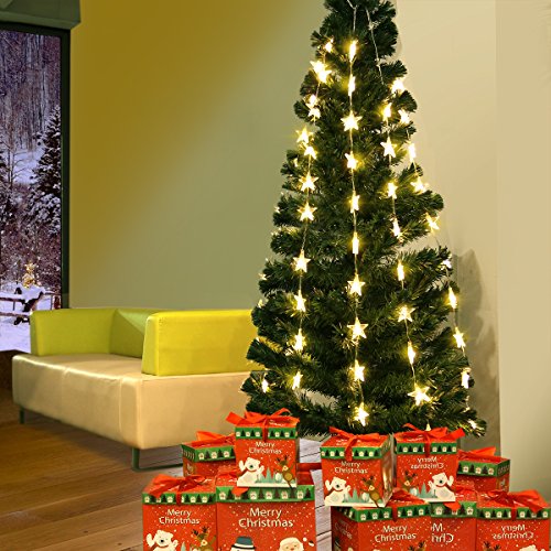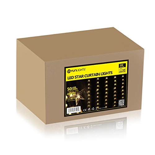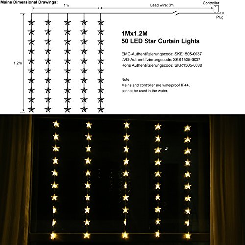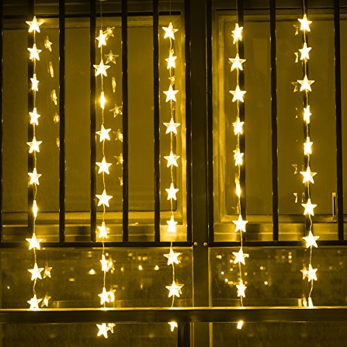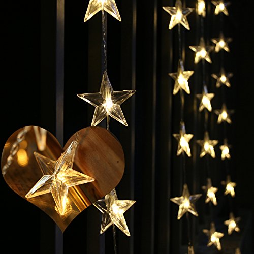 Star Curtain Lights, LEORX 50 LED 4ft Window Curtain Lights Waterproof for New Year Wedding Home Garden Indoor Outdoor, Warm White