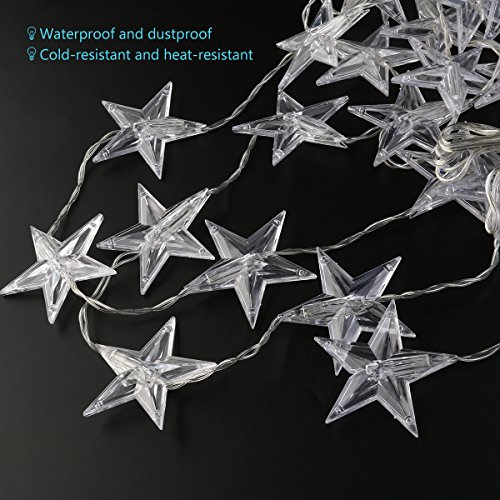 - Dimensions 1m x 1.2m. Each strip has 10 stars measuring 7cm in diameter, there is approximately a 12cm spacing between each one. Epoxy lamp bead is waterproof, lead cable from transformer 3 meters long make it flexible to hang the lights.