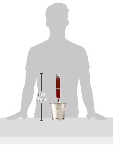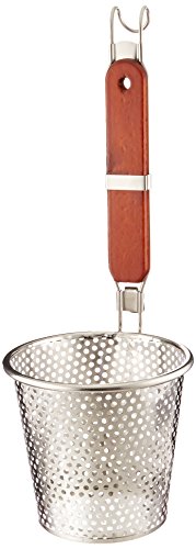 ExcelSteel Pasta Basket with Natural Brown Handle, 5", Stainless Steel