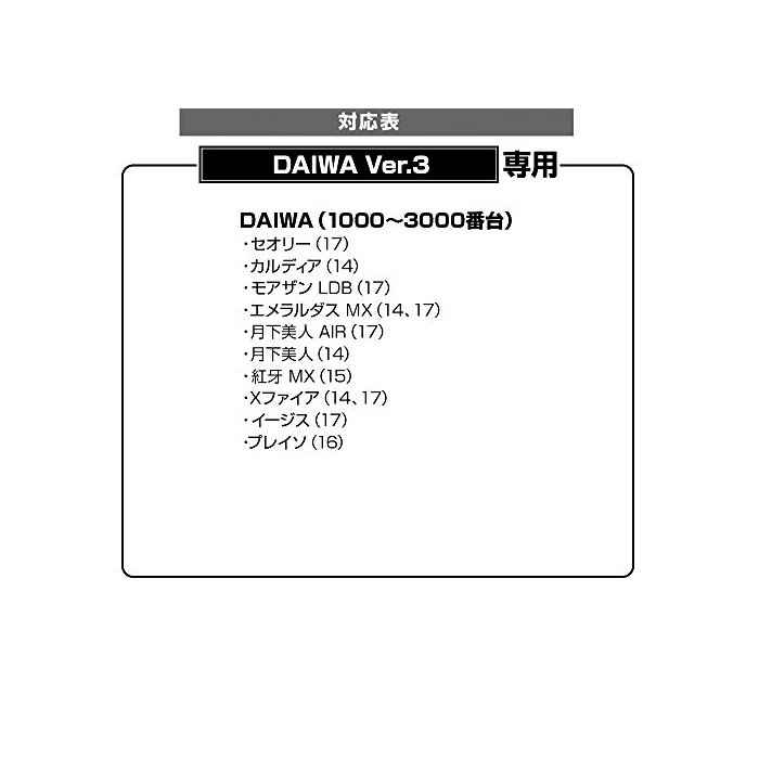 ▼▼▼DAIWA Ver.3전용▼▼▼●대응 기종:DAIWA(1000?3000카운터)이론(theory)(17)칼디아(14)프리《무스》(18)모어댄 LDB(17)에메랄다스 MX(14,17)월하 미인 AIR(17)월하 미인(14)홍어금니 MX(15)X파이어(14,17)이지스(17)플레이 소(16)▲▲▲▲▲▲▲▲▲▲▲▲▲▲▲기종에 의해릴 본체와 릴 스탠드가 간섭 될 수 있습니다.(부속 나일론 와셔,O링을 사용해 하십시오.)