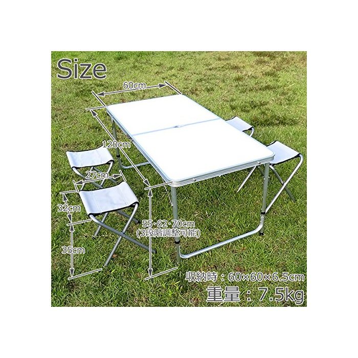 원본상품명: WhiteSeek ?納式アルミレジャ?テ?ブル チェア付き 高さ調節3段階式★セット 折りたたみ (ホワイト)
