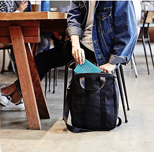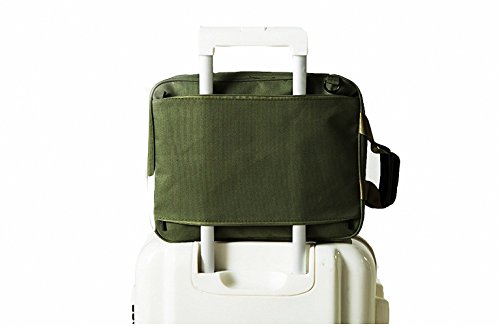 - USE:Favorite feature on this bag is the loop that helps attach it to my rolling luggageits, water resistant and it is large with a big flat bottom for sitting well on the ground, very stylish with the airplane, and two handles with 10 inch drop that can be carried anyway you want, adjustable buckles and slip onto roller travel luggage with the sleeve of the zippered pouch