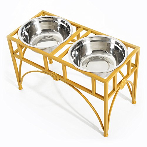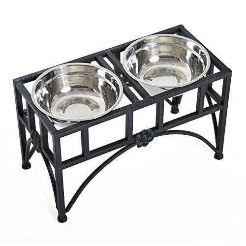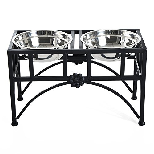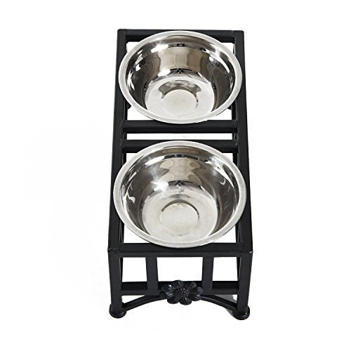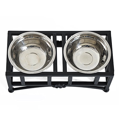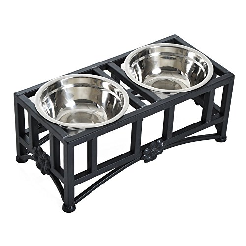 -. Title : Pawhut Elevated Double Stainless Steel Bowl Dog Feeder