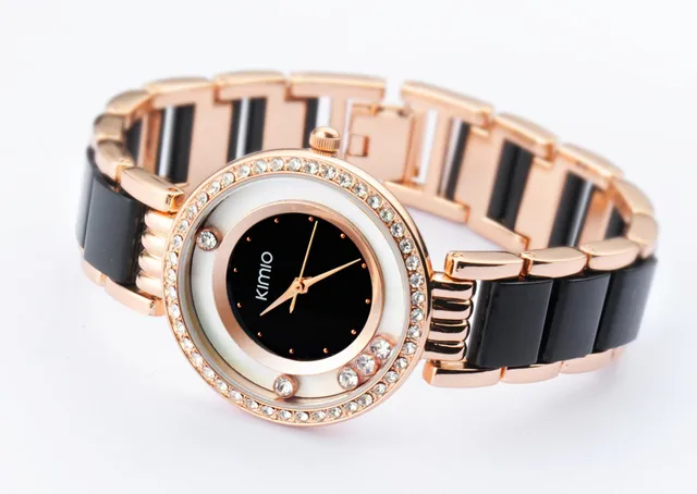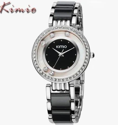 | [해외] KIMIO 럭셔리 여성 팔찌 시계 드레스 모조 세라믹 숙녀 패션 비즈니스 캐주얼 시계 방수 석영 시계 relogio |