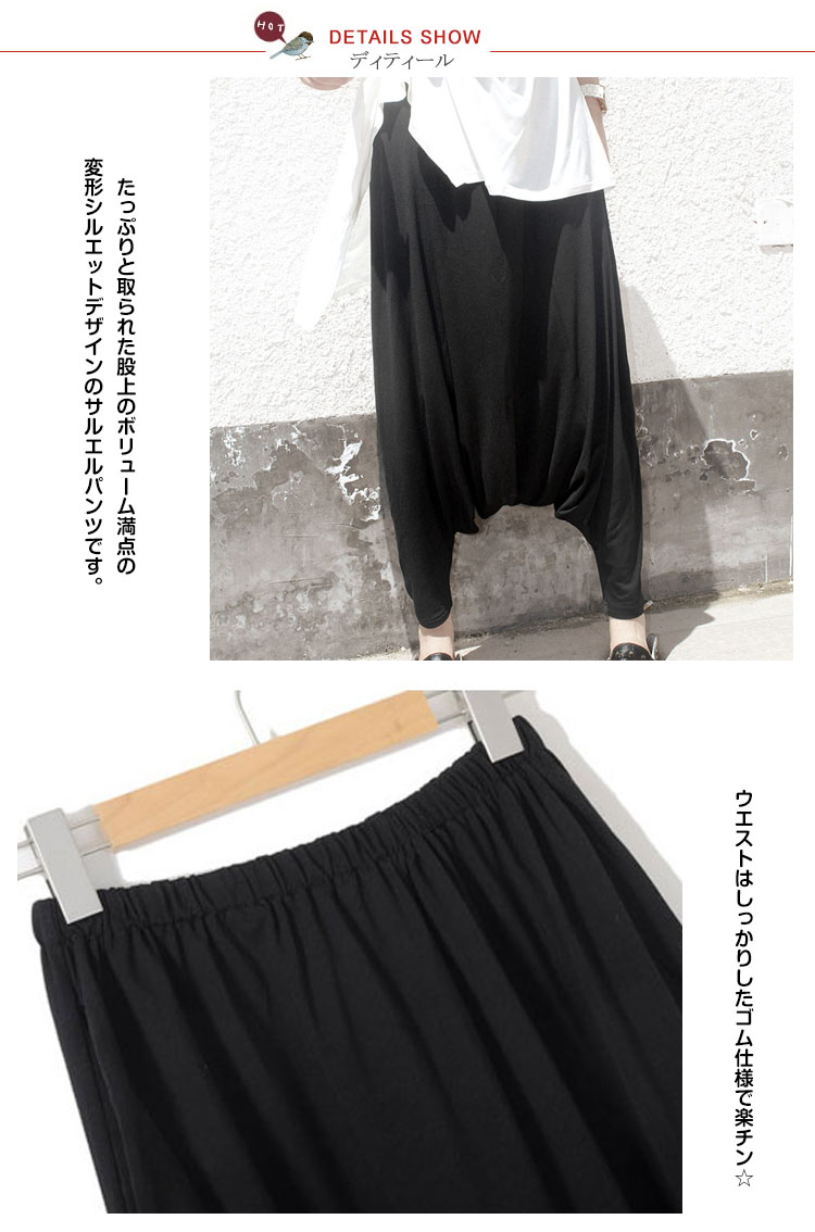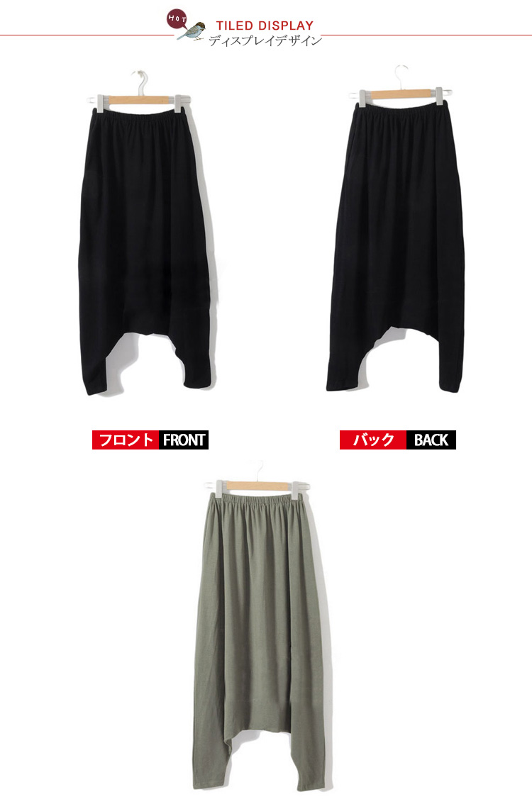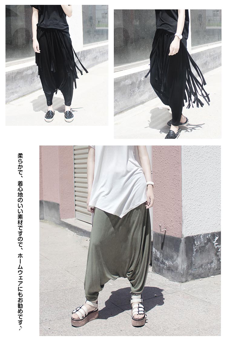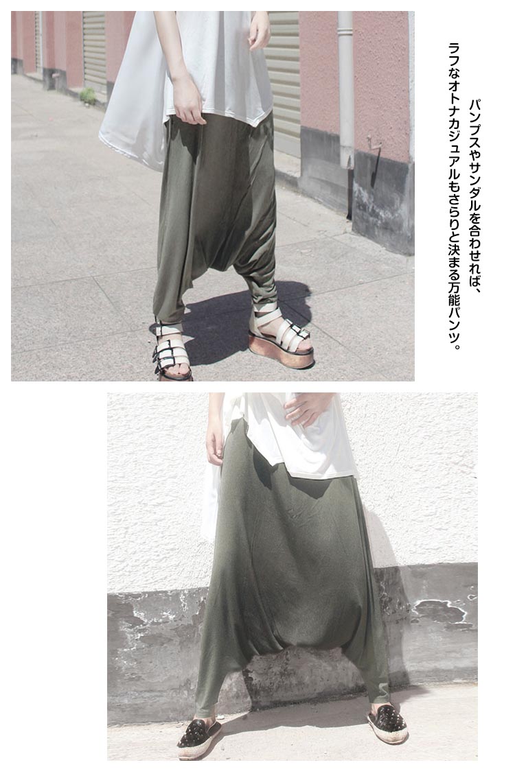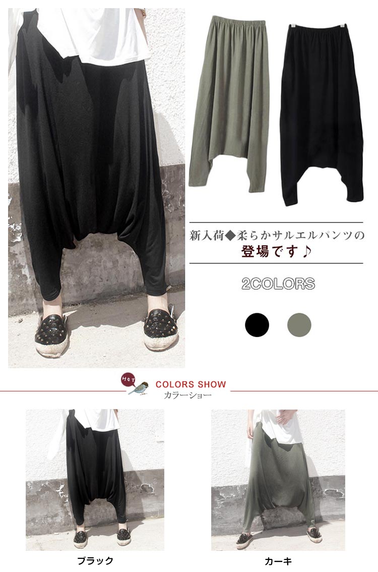 | 新入荷◆柔らかサルエルパンツの登場です♪通常のサルエルパンツよりも深く股上を取っているので、一見スカートっぽく見えちゃう女の子らしいカジュアルデザインです♪柔らかで、着心地のいい素材ですので、ホームウェアにもお勧めです♪パンプスやサンダルを合わせれば、ラフなオトナカジュアルもさらりと決まる万能パンツ。 | |