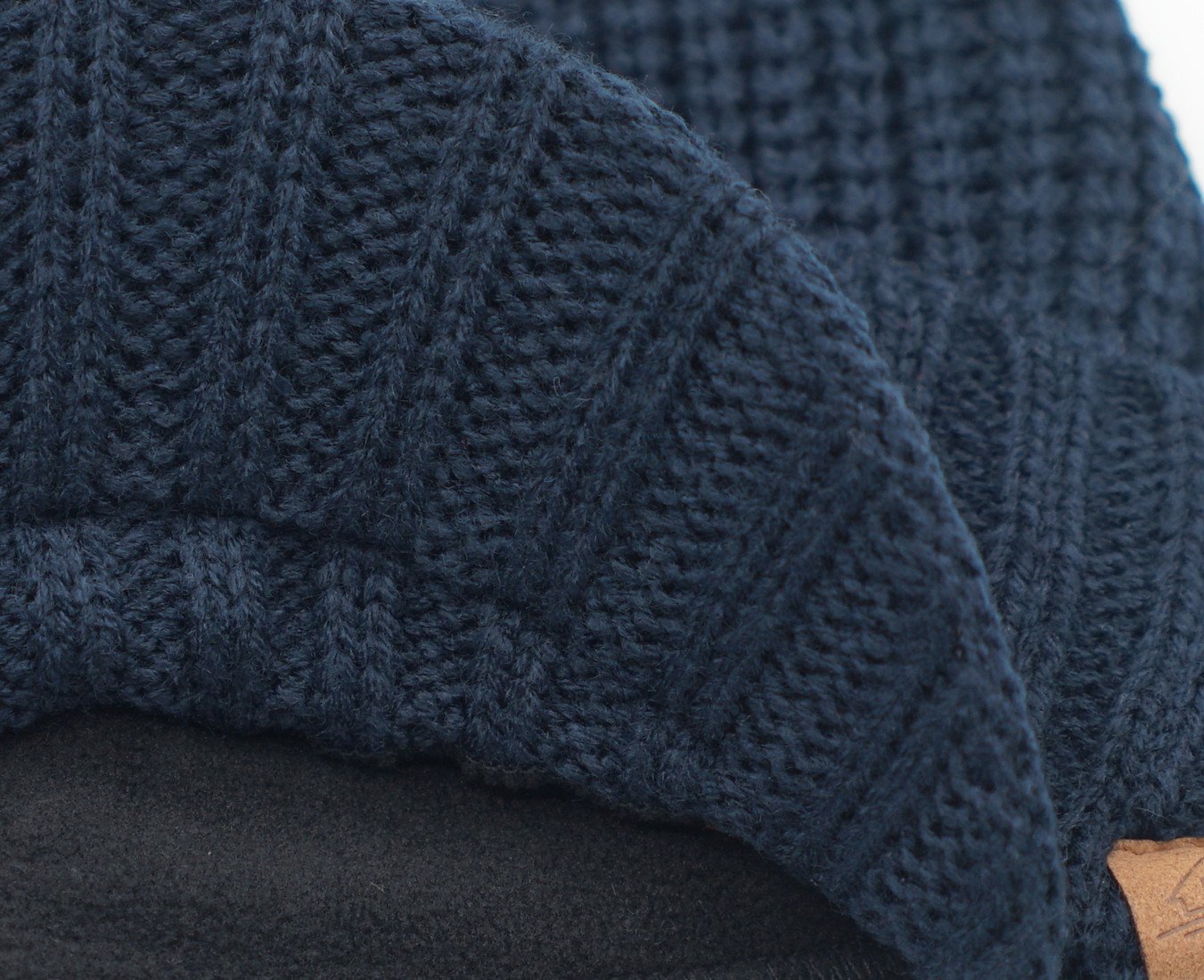 Connectyle This is a knit cap with collar made of 70% acrylic, 30% wool and 100% polyester lining.