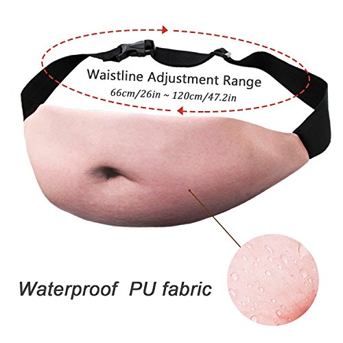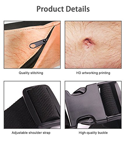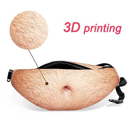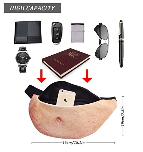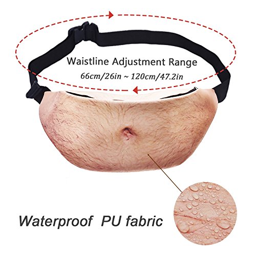 -. Feature : ✔LARGE CAPACITY- Product Size is 18.1" x 7.5" (46cm x 19cm).Large capacity and solid zipper keep your things a lot and safe when you get running or traveling .Free your hands! / ✔DURABLE AND WATERPROOF MATERIAL-Made of high quality PU, which is waterproof. It is suitable for most outdoor activities such as climbing,hiking,traveling... and makes your cash, cellphone or other accessories away from water. / ✔FASHION AND UNIQUE DESIGN-Mesh design conducive to breathe freely.The 3D P.R.Int Fake Hairy Belly makes the bags more funny. You can attractive more eyes in crowd. / ✔COMFORTABLE AND RELAX-Adjustable waist belt with buckle, which is suitable for most waist size. / ✔PERFECT GIFT- This is a perfect gift for him or her. Fanny pack or use for any occasion, Quality Guaranteed! Package includes:1x Belly Waist Bag( Hairy ) + 1x Headphone Case(3.15" x 3.15")