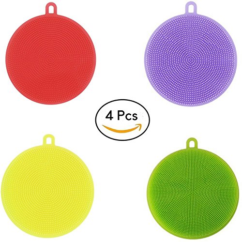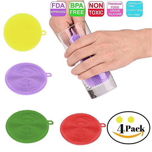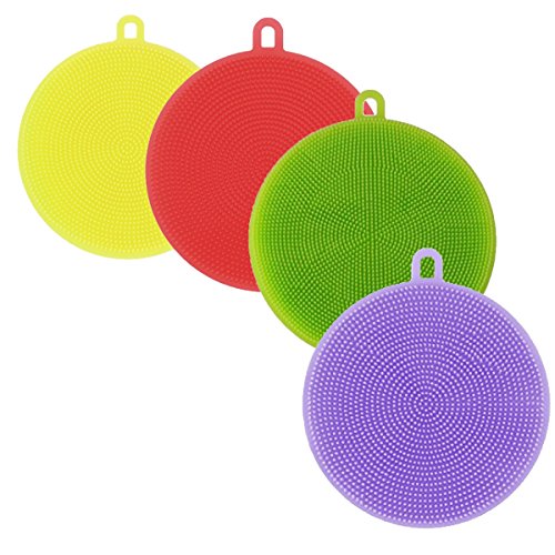 Silicone Kitchen Sponge Washing Scrubber for Better Dish Cleaning, 4 Pieces Multipurpose Dish-Washing Mildew Free with Antimicrobial Properties, by Nunechic