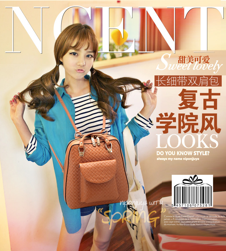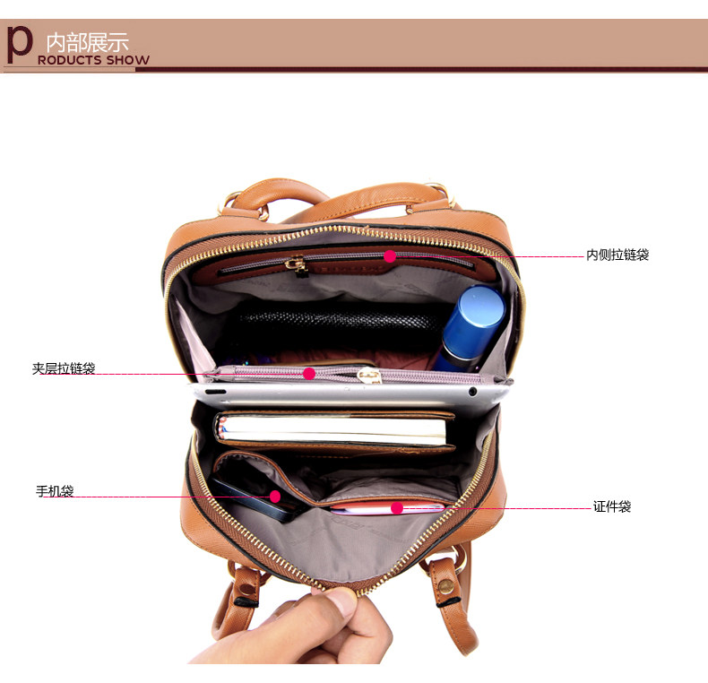 韩版时尚学院风双肩包。内部1个隔层拉链袋 1个拉链袋,2个置物袋