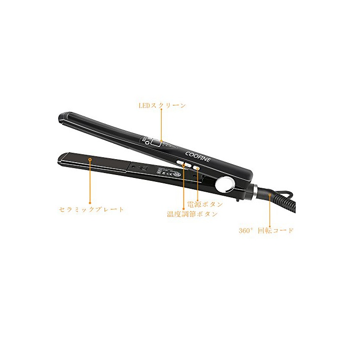 스트레이트 헤어 아이런 COOFINE 헤어 아이런 스트레이트 프로 사양 80-230℃ 마이너스 이온 카루 양용 해외 대응 블랙 1년간 보증