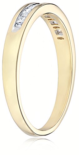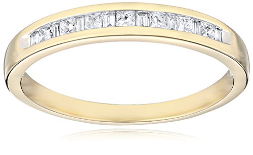 Anniversary band in 14k gold featuring channel-set diamonds in alternating princess- and baguette-cut shapes