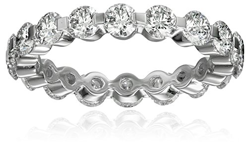 The Platinum Shared-Prong Diamond Eternity Ring is a truly breathtaking piece of jewelry. The band and settings are made of fine 950 platinum that boasts unrivaled luster. The 17 stones total an impressive 2 carats and are so wonderfully substantial that they are wider than the portion of band that can be seen between them. The very-good-cut diamonds are near colorless and nearly flawless for a stunning, sparkling beauty. This ring makes for an absolutely lavish engagement band or simply an exquisite gift to someone for whom you care deeply. The ring comes in an equally classy, finished-wood box.Feature
