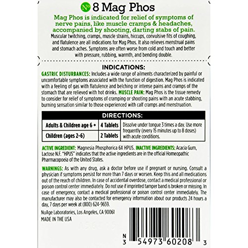 -. Title : Hyland's NuAge Labs #8 Magnesium Phosphate - 125 Tablets - Temporary Symptomatic Relief of the Symp of Gastric Disturbances, Muscle Pain