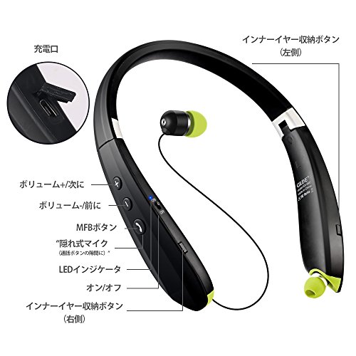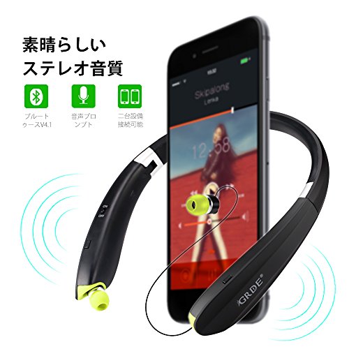 GRDE.JP 블루투스 Bluetooth 4.1wireless 헤드셋 스포츠 이어폰 넥 밴드형 장시간 재생 방수 방적 마이크 내장 노이즈 캔슬 테크놀로지 탑재 통화 가능 iPhone iPad Andr