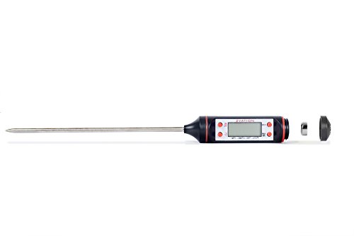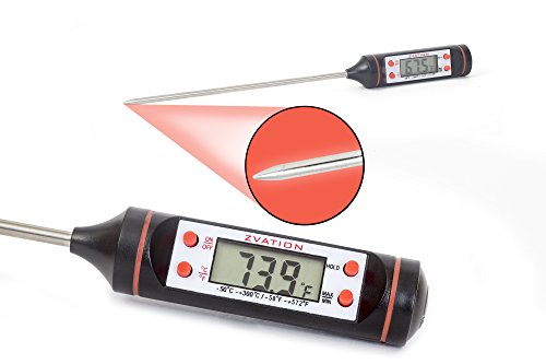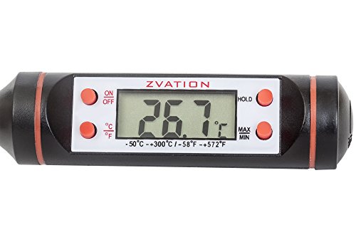 Studio : Zvation Publisher : Zvation Product Description Zvation™ Digital Cooking Thermometer Zvation Digital Cooking Thermometer simple design makes cooking a whole lot easier, you wont be throwing good food away. Now you can BBQ, Grill, Smoke, Cook or Broil and prepare the rest of the meal without fear of under or over cooking the food. Features: *No more guessing required for all Solid and Liquid Foods, BBQ, Grill, Broiler, Smoker, Oven, Milk, and Bath Water. *LCD display gives you accurate temperature results in 8 seconds. *Displays both in Fº and Cº, simple by a press of a button. *Battery-saving automatic shut-off after 10 minutes. *Stainless Steel Waterproof Probe up to 572Fº. *Temperature range 58Fº - 572Fº/50Cº - 300Cº. *For use anywhere that accurate temperature control is required. *5.9inch long probe keeps your hands safe while measuring. *Stores memory of last measure. *Accurate temperature of up to 0.1°C/°F!. *Lightweight and durable. *One year warranty. Please Note Never use thermometer in a closed oven. Do not use the thermometer over 572Fº/300Cº otherwise it will burn out the probe. Do not use the termometer in a microwave oven. Clean the Probe thoroughly after every use. The thermometer is NOT waterproof or dishwasher safe. Do not immerse the whole product in water. It can be wiped clean with a damp cloth. Please replace the batteries when the display becomes dim. Please dispose the used batteries in a responsible manner. What's in the Box *Zvation Digital Cooking Thermometer. *One LR44 battery. *User manual. Warranty Made of the highest quality material which will last for many years. Satisfaction guaranteed. If you're not satisfied with our product, we offer a one year Warranty. Hurry and Click "Add to Cart" while supplies last! 0