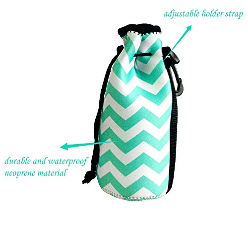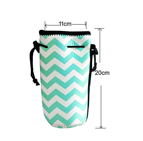 DIMENSION AND PACKAGE--Dimension:7.1"L x 6.5"W x 11"H,Lunch bag fits containers up to 7"L x 6"W,Water Bottle Tote Fits 22 oz Longneck Water Bottle or Tall Beer Bottles.Package Include:1pcs Neoprene Lunch Bag with Water Bottle Tote(not include water bottle).