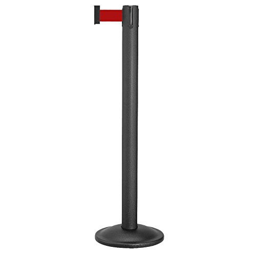 Beltrac Retractable Belt Stanchion for queue lines, Wrinkle Black Post with 7 foot Red Belt.