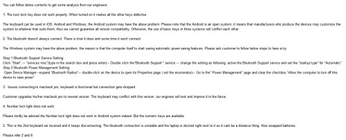 Note: The number keys can be used when keyboard is successfully paired with a device;The fn key does not need be pressed when you use the function keys for iOS system.