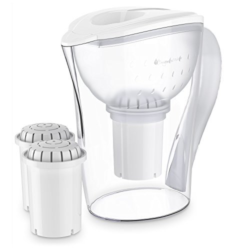 MODERN DESIGN (Improved 2017 MODEL) - Easy-to-Fill Lid System & Digital Gauge so you know when to change your filter. Anti-Block ~ latest technology filter material compound (search B00X127CGE). PREMIUM ECO-FRIENDLY MATERIALS - BPA free, SGS Certified, FDA, TUV, RoHS, BSI, ISO 9001:2000 Member of The Water Quality Association.