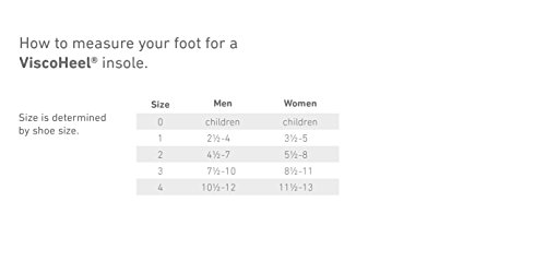 Studio : Bauerfeind USA, Inc Publisher : Bauerfeind USA, Inc Binding : Sports Product Description Bauerfeind ViscoHeel Heel Cushions are made of soft high quality viscoelastic silicone and reduce shock loads to the ankles, knees, hips, and back. This relief reduces pain that is primarily caused above, not below, the heel, such as when the Achilles tendon is inflamed, a "pump bump," known as Haglund's deformity, or in knee or hip osteoarthritis. Protects joints, spine, tendons and ligaments, with every step. Anatomical design supports the hindfoot and smoothly tapers toward the midfoot and facilitates a natural heel-to-toe movement. Slightly wedge-shaped heel cushions are anatomically contoured and are therefore, Right and Left specific. Flush fit in your shoe, allowing the shoe, heel cushion and foot, to form one stable unit. Low profile heel rim so they won't slide in your shoe. Indications: Arthritis or Osteoarthritis of the leg joints, hips, or knees (shock absorbing effect), Knee prosthesis relief, Achilles tendinitis, Achillodynia, - tendomyopathy, Haglund's deformity - partial relief (pump bump), Tarsal bone pain, Leg length difference up to 1/3 inch (1 cm) by wearing one cushion, Calcaneal (heel) pain. Made in Germany with the highest quality standards. Does not absorb odors. Clean with soap and warm water. Latex free. Sold in pairs. Size determined by Shoe Size: Size 0 = Child, Size 1 = Men's 2.5 - 4, Women's 3.5 - 5, Size 2 = Men's 4.5 - 7, Women's 5.5 - 8, Size 3 = Men's 7.5 - 10, Women's 8.5 - 11, Size 4 = Men's 10.5 - 12, Women's 11.5 - 13 0
