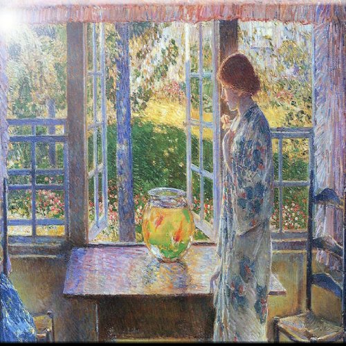 Rikki Knight RK-6intilec-3014 6" X 6" Childe Hassam Art The Goldfish Window Design Ceramic Art Tile