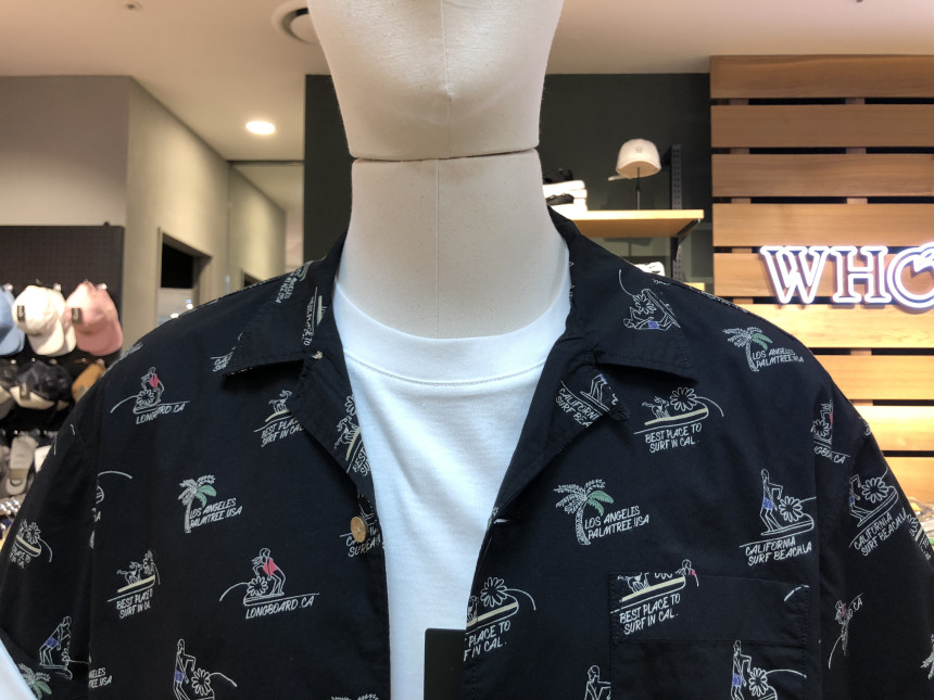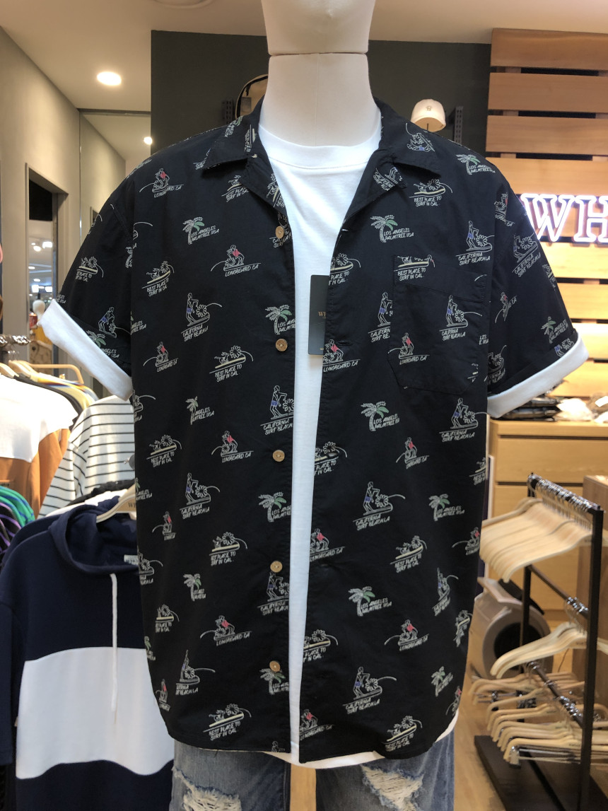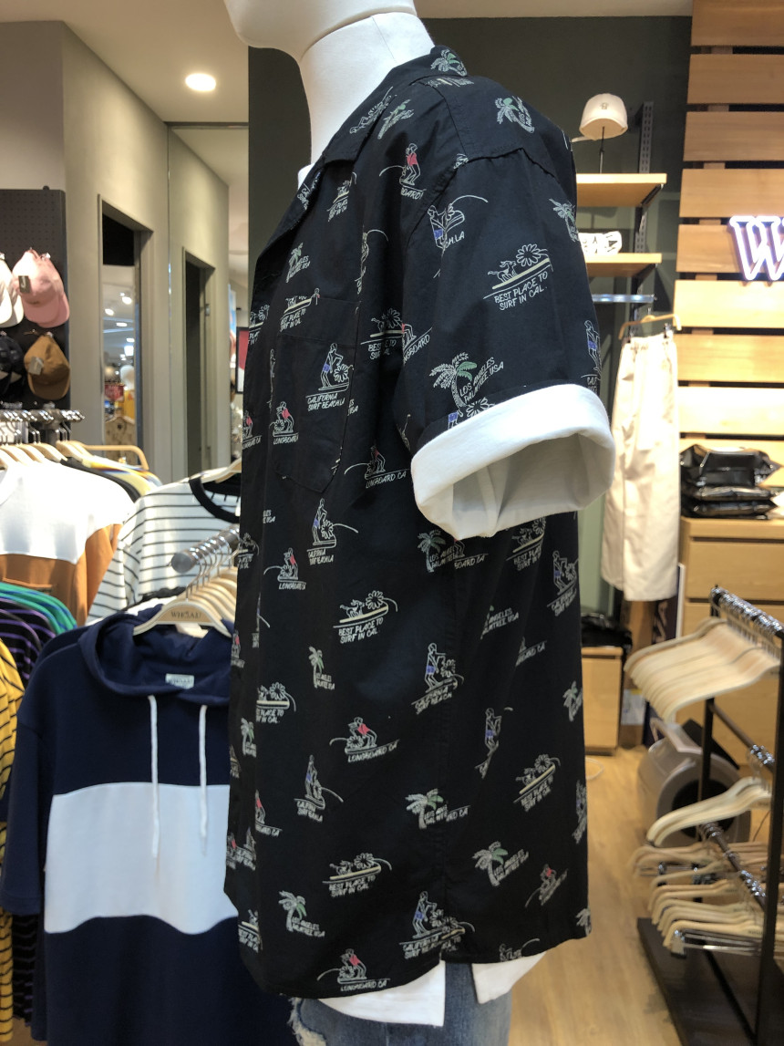 전판에 들어가는 서퍼 문양이 포인트인 반팔 셔츠입니다~