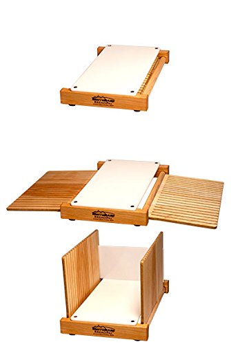 - Feature : Perfect slicing made easy! USA Made / Uses hardwood and hardwood faced materials; No Bamboo (No splinters) / Spring loaded, foldable design is quick to open and close with absolutely no assembly required / Slices 1/2" and 3/8" pieces; slice in every other slot for thicker slices / Sanitary Polyethylene cutting surface for easy cleaning