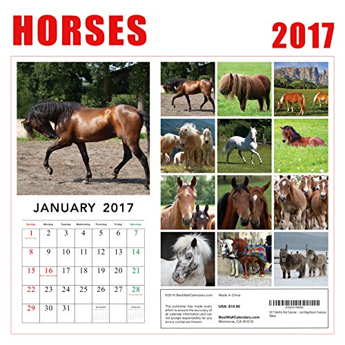 2017 Horses Calendar - 12 x 12 Wall Calendar - 210 Free Reminder Stickers