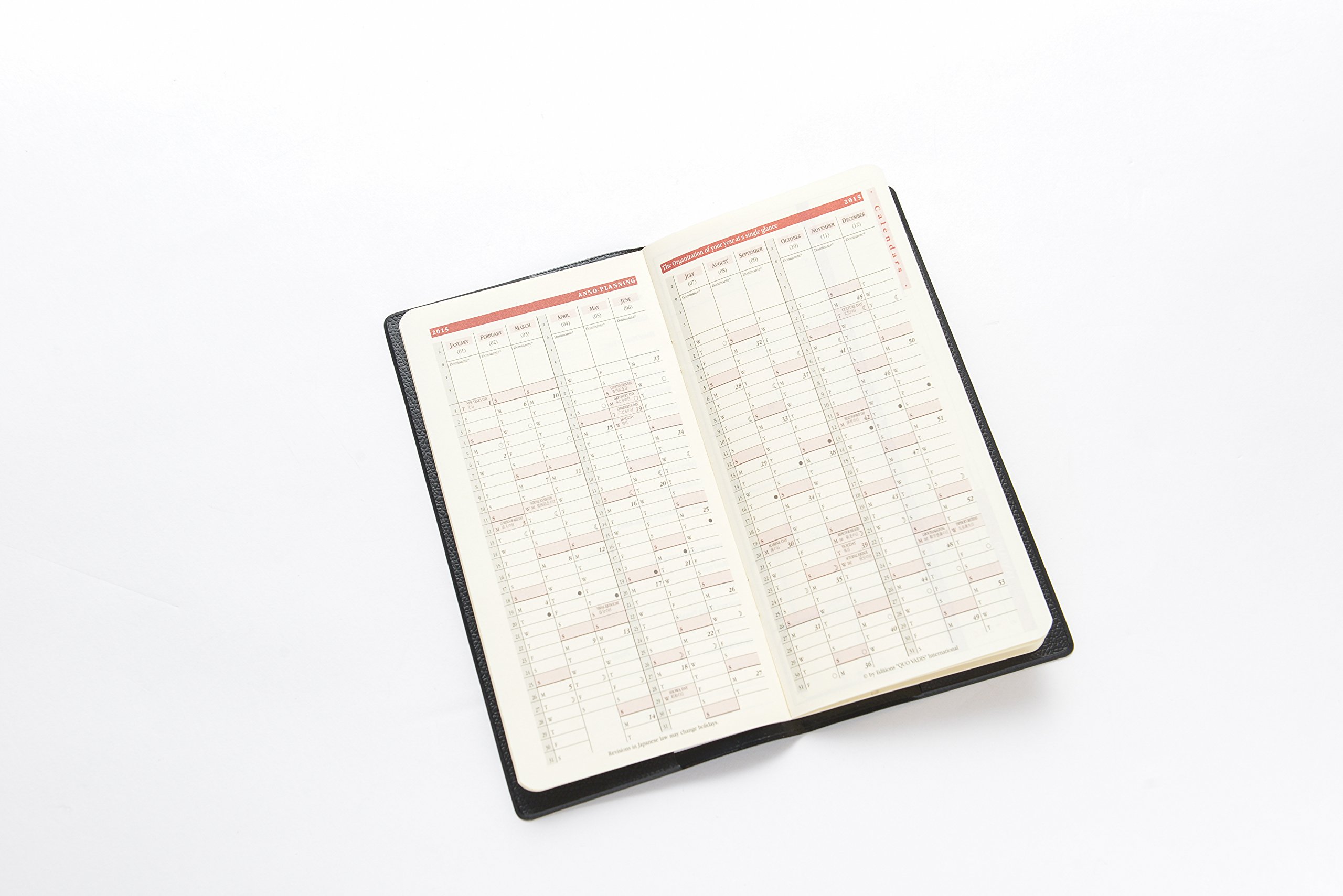 Thin type diary which can be used for a wide range of applications, such as sub-diary and private use to confirm the schedule by overhead view as well as the main use.