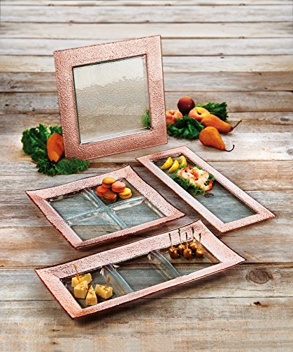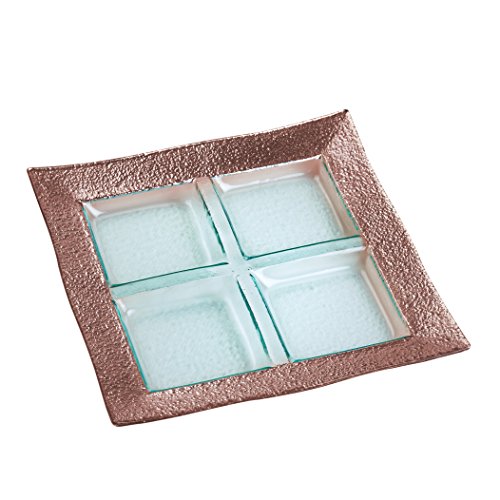 Studio : Amici Home Publisher : Amici Home Binding : Kitchen Product Description The Amici home studio collection four section platter features a vibrant Rose Gold border around a sturdy, simplistic glass body. As a centerpiece, party platter, or decor piece, this piece is perfect for any use. This platter is a fantastic addition to jazz up any party or kitchen! measuring 13" L x 13" W x 1.5" H, this glass platter requires handwashing to maintain its beauty and functionality. The studio collection also has a three section platter, Rectangle platter, and a square platter available. 0