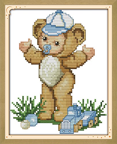 Happy Forever Cross Stitch Cartoon, the lovely baby bear (boy)