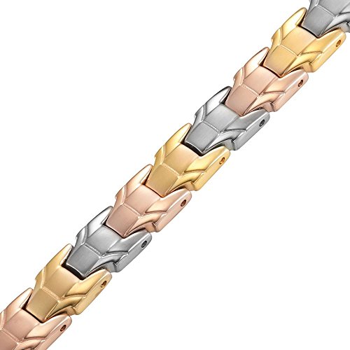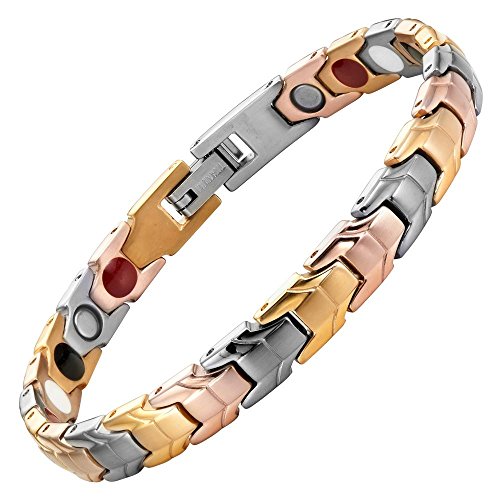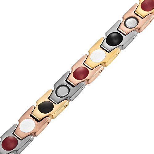 -. Binding : Jewelry -. Brand : Willis Judd -. Department : womens -. EAN : 5060372454141 -. Feature : Free black velvet bracelet box included / Free link removal tool - allows you to adjust the size in the comfort of your home / Extra strong high powered magnets (3000 gauss) / Hand crafted from super strong, yet super light weight pure titanium / Please read feedback from our satisfied customers -. Label : Willis Judd -. Manufacturer : Willis Judd -. Model : TB0125FE -. MPN : TB0125FE -. PartNumber : TB0125FE -. ProductGroup : Jewelry -. ProductTypeName : FASHIONNECKLACEBRACELETANKLET -. Publisher : Willis Judd -. Studio : Willis Judd -. Title : Womens Tri Colour Gold Four Element Magnetic Titanium Bracelet + Free Link Removal Tool By Willis Judd