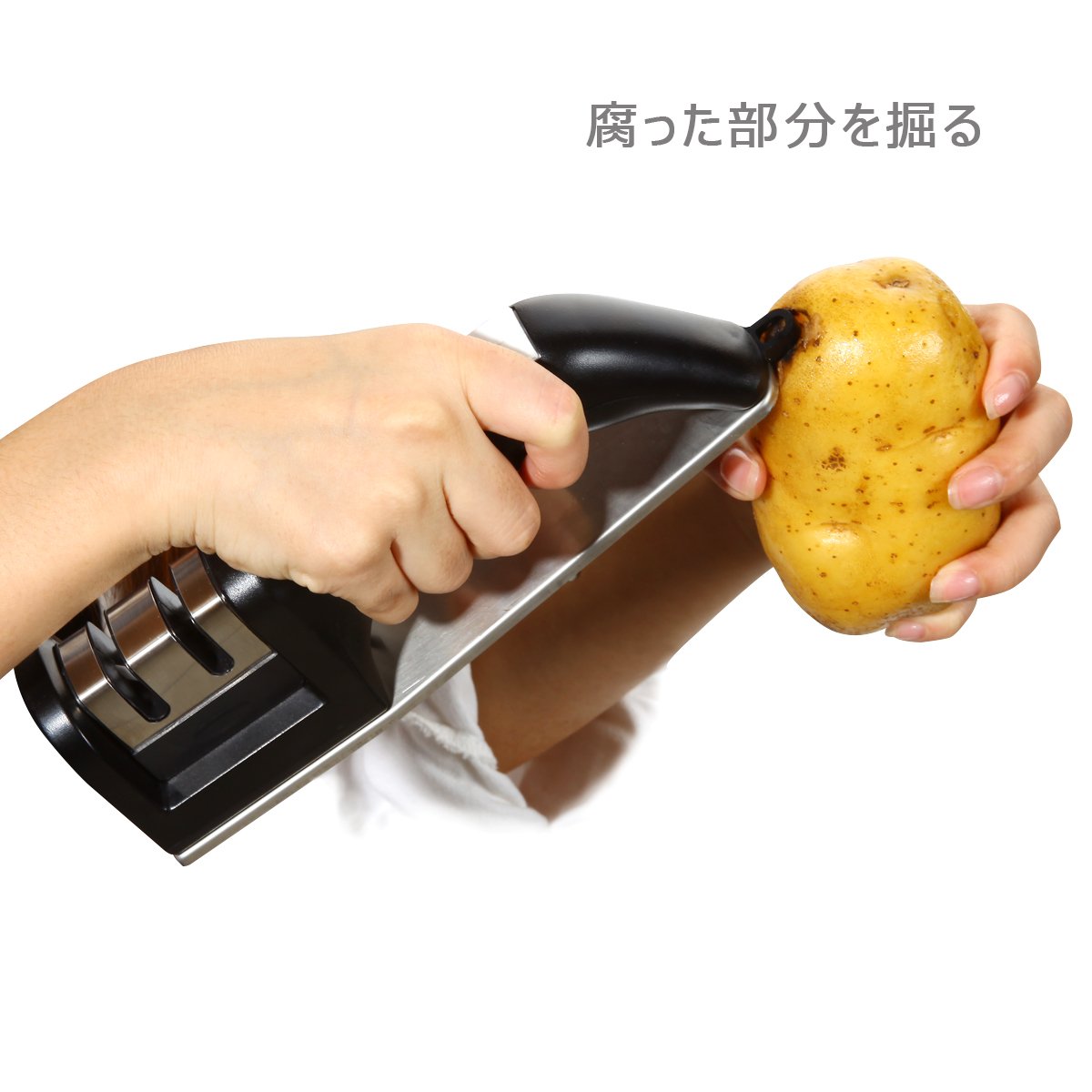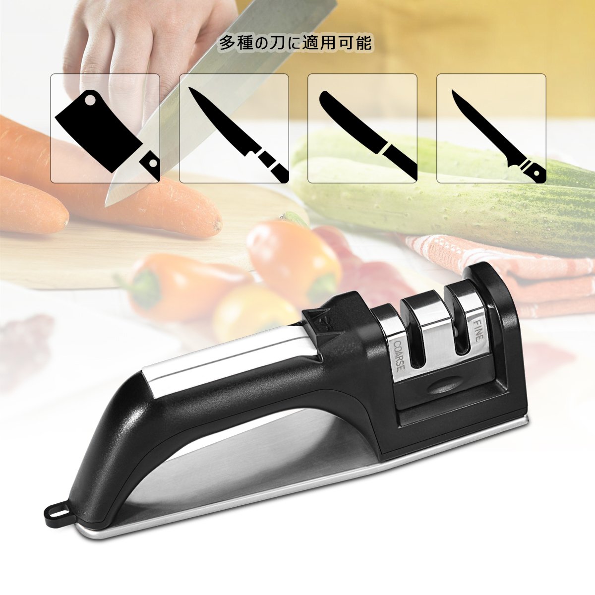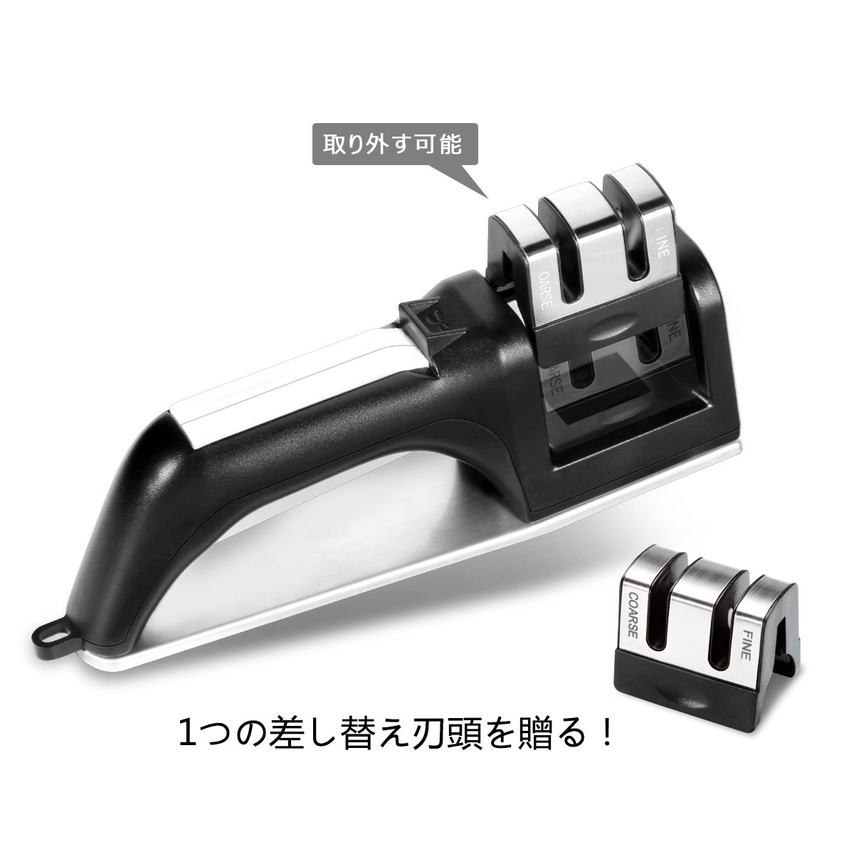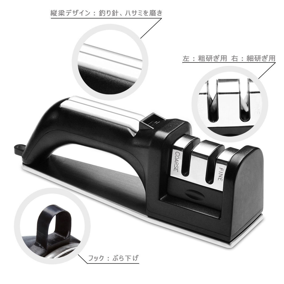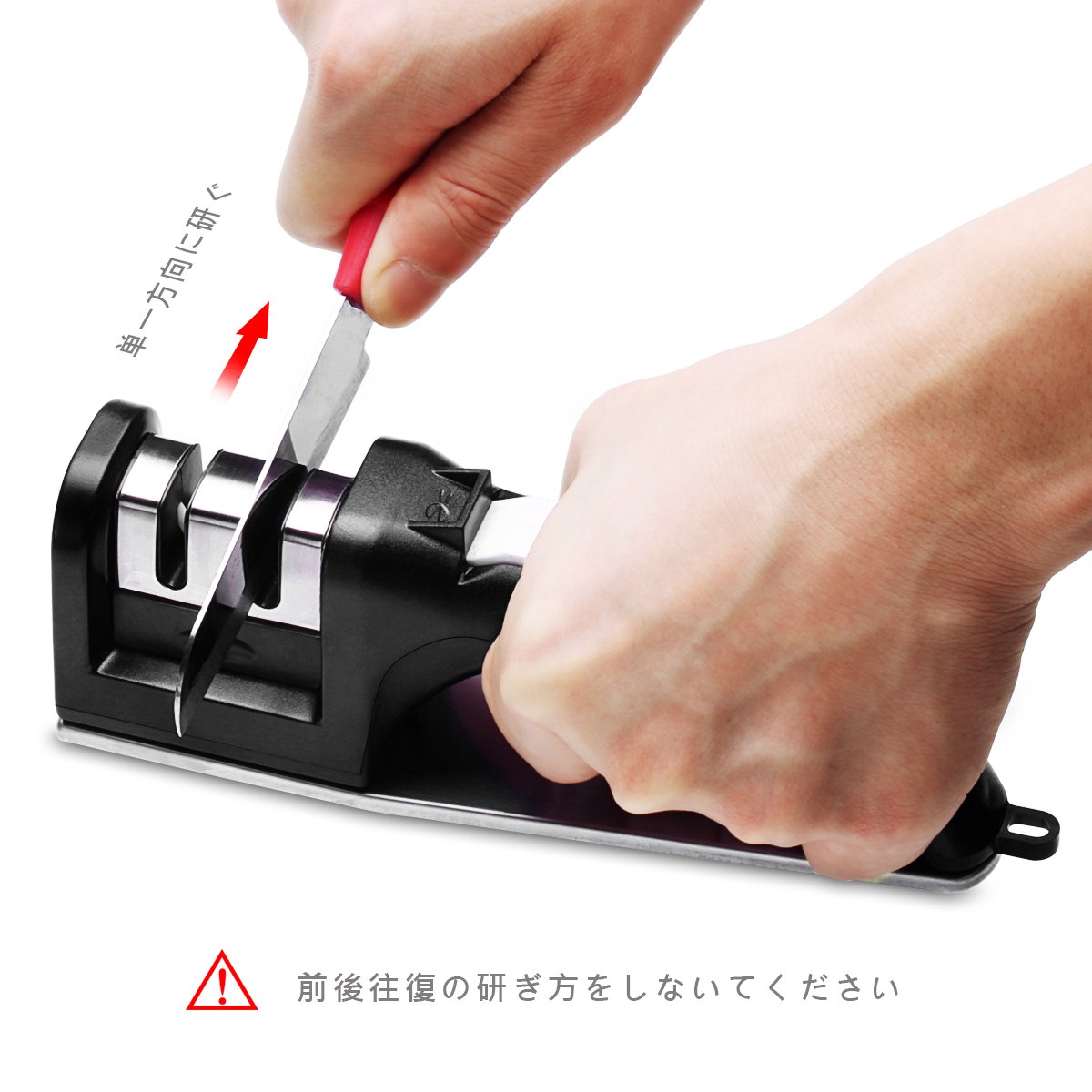 (COARSE): Put the blade in the sharpening groove, sharpen in one direction, polish back and forth.