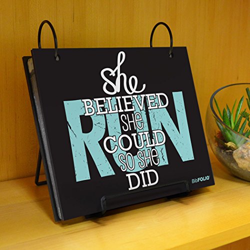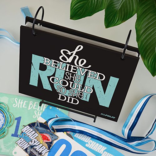 THE ORIGINAL BIBFOLIO® RACE BIB ALBUM protects and beautifully displays your impressive collection of race bibs from marathons, half-marathons, 5Ks, triathlons, road races, and other athletic events. This popular She Believed She Could BibFOLIO makes the perfect gift for a runner to keep on display at home or in the office!