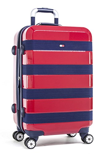 TOMMY HILFIGER RUGBY STRIPE 25 INCH HARDSIDE CARRY-ON LUGGAGE, RED