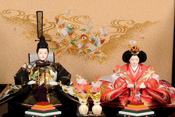 親御様、お子様、縁者様の健康と発展を願いながら職人が丁寧に仕上げた雛人形飾り/雛人形が初節句のお祝いにはなを添えます。