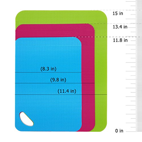 Set of 3 Cutting Boards, ANIN 12" 13.5" 15" Flexible Plastic PP Chopping Mats Non-stick Anti-slip for Kitchen - Blue, Rose Red, Green