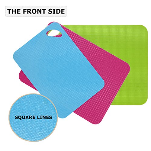 - SEPARATE DIFFERENT KINDS OF FOOD: 3 different sizes cutting board of 3 colors are perfect for you to separate the boards for raw meat, cooked meat, and fruit, vegetables.