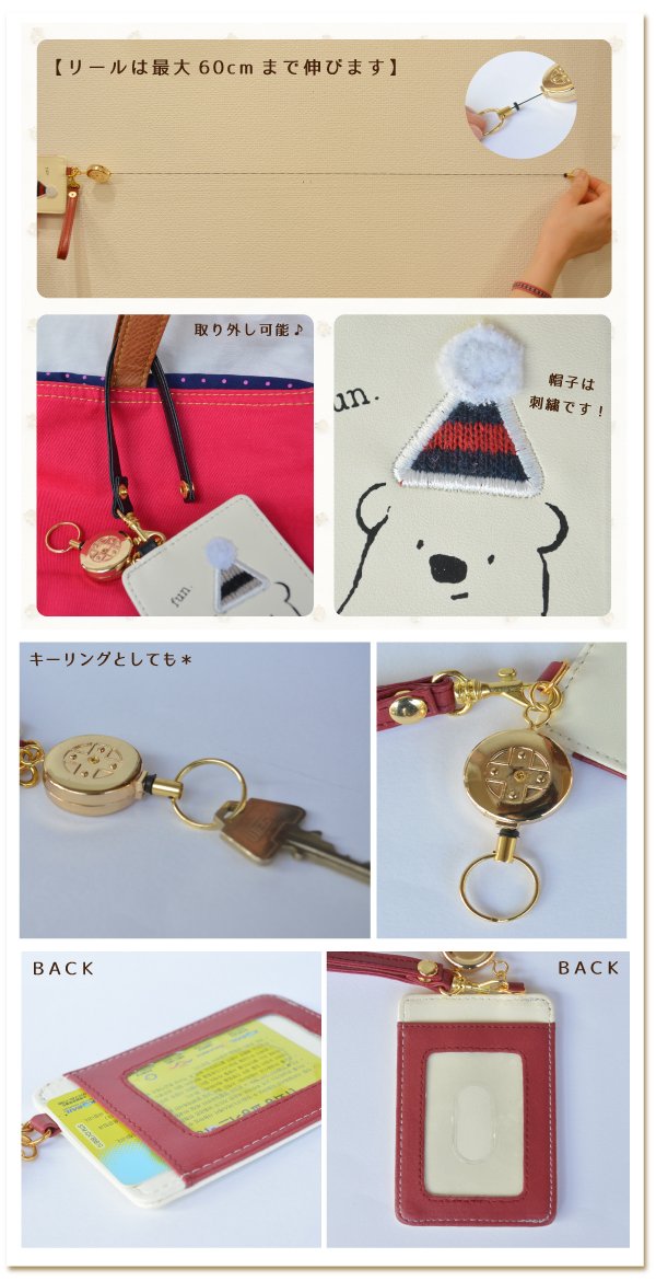 Since it has an extending reel, IC cards are readily picked up ♪ Bear's hat is a cute cuteness of genuine knitting and embroidery ... * It is a perfect pass case for gifts.
