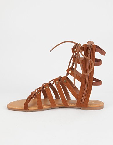Studio : Bamboo Publisher : Bamboo Binding : Apparel Product Description Bamboo gladiator sandals. Strappy lace up lattice design. Zipper on inside ankle. Elastic straps at back. Faux leather footbed. Synthetic outsole. Approx shaft height: 4". Imported. 0
