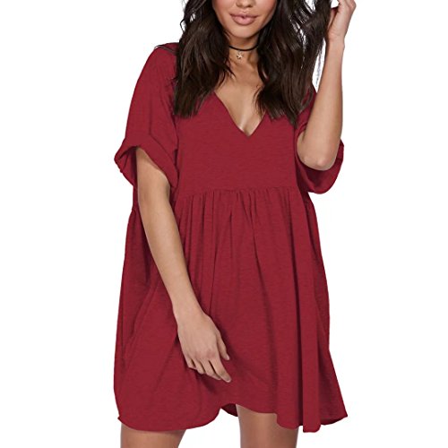 -. Binding : ウェア&シューズ -. Brand : BJHG ORIGINALS -. Department : レディース -. Feature : Material:Cotton Blend / Features: Short Sleeve,V Neck, Solid color, Loose / High quality and fashion design / Hand wash recommended;Machine wash cold/Do Not Bleach/Hang or Line Dry. / Please Note:It's Asian SIZE .In Order to Avoid the Size Problem, Please According Our Asian SIZE CHART on the Products' Description to Choose the Proper Size for Yourself -. ProductGroup : Apparel -. ProductTypeName : DRESS -. Title : Womens Sexy Solid Color V-neck Short Sleeve Pleated Loose Mini Dress
