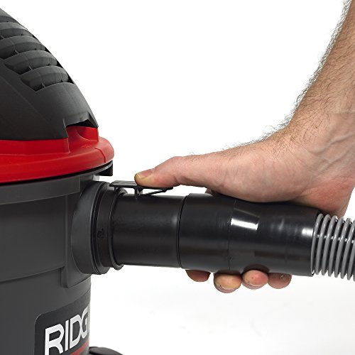This wet dry vac has a 1-7/8-inch by 8-foot locking hose that won't pull loose while in use, ensuring consistent and optimized air flow. The hose has a smooth interior surface that prevents clogging, and it can also lock into the blower port for removing leaves and debris from walkways, decks or job sites.
