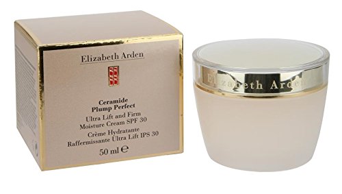Elizabeth Arden's Plump Perfect phenomenon goes ultra with new Ceramide Plump Perfect Ultra Lift and Firm Moisture Cream. This anti-aging super moisturizer lifts plumping to a new level with CPT technology (Cellular Plumping Technology). This breakthrough blend of SNAP-8, a new peptide, and a collagen-supporting naturally-derived extract is a double dimension skin plumper. It works to smooth and relax the appearance of surface lines as it targets deeper wrinkles to firm, lift and redensify the look of skin. Benefits: Experience next level Ceramide plumping benefits with CPT technology, to give skin a more lifted, redensified look as it plumps the appearance of surface lines and wrinkles. With continued use, skin appears smoother, firmer, visibly relaxed and revitalized. Moisture-boosting hydration and Ceramide Triple Complex (Ceramides 1,3 and 6) to strengthen, soothe and retexturize skin's appearance. Broad spectrum UVA/UVB SPF 30 helps protect from the aging effects of the sun. Made in USAFeature