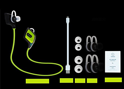 -. Feature : Advanced Technology: With Bluetooth 4.1 and apt-X tech, the headphones ensure high-fidelity stereo music and clear speech within 10 meters. CVC 6.0 noise reduction technology makes you enjoy a clear sound in noisy occasion. / Innovation Design: Soft smooth rubber, unique flexible design and custom ear buds ensure you get it perfect fit and remain stable in your ears. Included S/M/L ear tips and in-ear ear hooks ensure a comfortable and secure fit for everyone. / Multi-function: This Bluetooth earphone allows you realize remote control to your devices, such as, volume up/volume down, previous track/next track, answer/end calls. Build-in microphone makes your phone call hands free. / High Quality Guarantee: Powerful rechargeable battery provide 5 hours of Talking/Playing time (The time varies according to volume level and audio content). / Compatible with all Bluetooth enable devices, such as iPad, iPhone, iPod Touch, Android Smartphones, tablets, Bluetooth-enabled music players and any devices with Bluetooth connection.