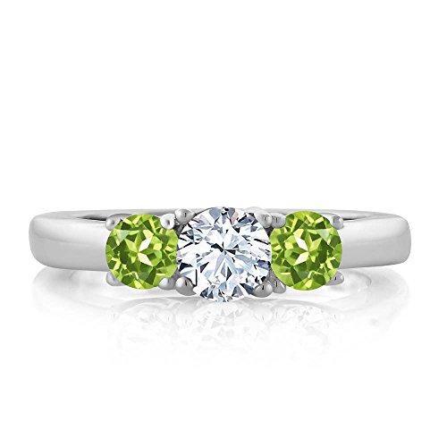 -. Title : 1.35 Ct Round White Zirconia Green Peridot 18K White Gold Ring