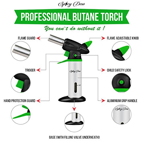 Have you ever imagined a hassle-free cooking experience especially when you want to give your baked and roasted food a final touch? Envision yourself creating the tastiest and most mouth-watering dishes on par with the best restaurants in the world! You are only a step closer by using our Professional Culinary Torch. Built for reliability, safety and ease of use, this multi-purpose Culinary Torch brings the Professional chef's experience to your kitchen, with a strong and consistent flame, our torch is your best tool! Why should you choose Spicy Dew Professional Torch? - To brown creme brulees, caramelize meringues, singe steaks, grill seafood, melt cheeses, toast breads, and make your BBQ parties even more interesting! - Our SUPERIOR QUALITY SAFETY PROTECTION kit guards you from the flame and allows for easy and precise maneuvering. - The ANTI-FLARE TECHNOLOGY and Child Safety Lock enables you to operate the product without a worry in the world! - It is as easy as A B,C to learn how to use it! To ignite the Torch, rotate the Flame Adjustable Knob counter clockwise. Press the Child Safety Lock and then press the Trigger, flame starts. The instant flame can burn to an amazing 2372 °F! To switch off the flame, press the Child Safety Lock, resetting its state and rotate the Flame Adjustable Knob clockwise to the end. - Made to LAST with a durable heavy duty metal body. - Depending on the size of the flame, the torch can burn up to 60 minutes. All of this with our 100% NO Questions, NO Hassle Money Back/Replacement Guarantee for 90 Days and a 3-year Warranty! Sharpen your cooking skills with this master torch. With love from our kitchen to yours. Enjoy! So ORDER NOW to have the torch ready for your kitchen next time. 0 |