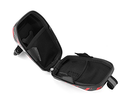 ✅ CLICK-ON DESIGN - The bike saddle bag is very easy to install (fits most road or mtb saddles - see image and PLEASE measure your saddle - Phillips screwdriver is required for installation) and can be removed easily and quickly in case you need to access your essential bicycle items. Everything inside is just one click away. There is no need to play around with velcro anymore.
