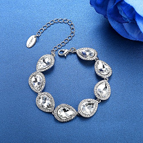 -. Title : mecresh Flower Teardrop Clear/Champagne Austrian Crystal Jewelry Sets for Women or Bridesmaids(1 Set Earring,1PCS Bracelet)