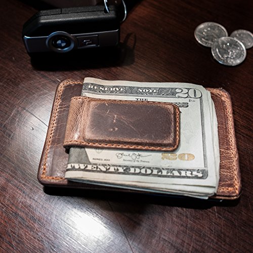 HANKS LEATHER MONEY CLIP WALLET Finally an ultra-low profile pocket wallet that can securely hold all your cards and cash. This incredibly slim card case can hold up to 6 credit cards comfortably, and features a pair of heavy-duty magnets to secure your cash. Handcrafted in the USA from thin yet durable goatskin, and made to last; this is quality you can see and feel. Slip it discreetly into your front suit pocket or the back of your Levis, no one but you needs to know what pocket you've got your valuables in! SPECS USA Made 100% Goatskin Approx weight .20 pounds 4 3/8" x 2 7/8" x 3/4" | Weight - .20 pounds